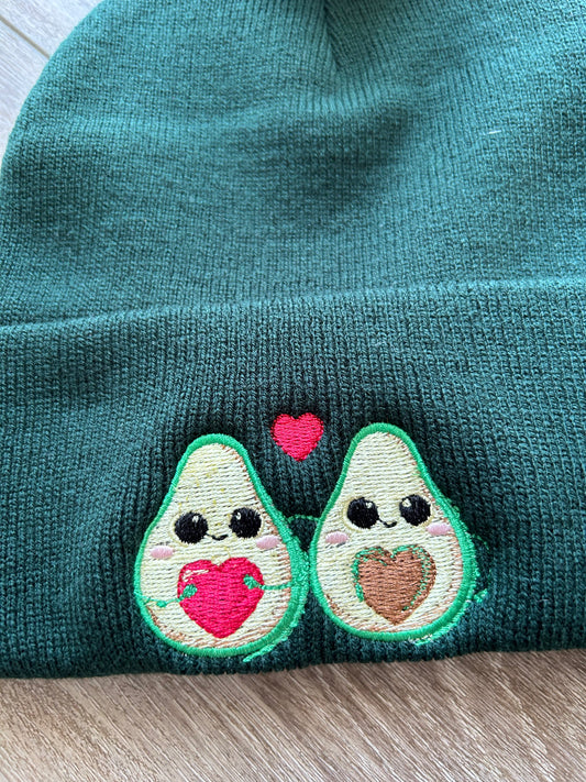 Embroidered Avocado Lovers Unisex Cozy Cute Winter Pom Pom Cuffed Knit Beanie Hat Special Gift