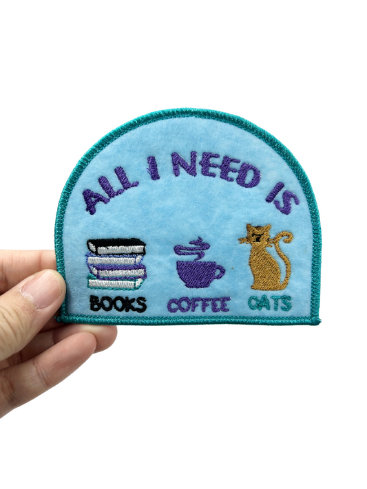 All I Need Is Books Coffee Cats Glittered AND Felted Iron-on Patch.Add on Clothing Backpack