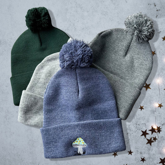 Embroidered Mushroom Unisex Cozy Cute Winter Pom Pom Cuffed Knit Beanie Hat Special Gift