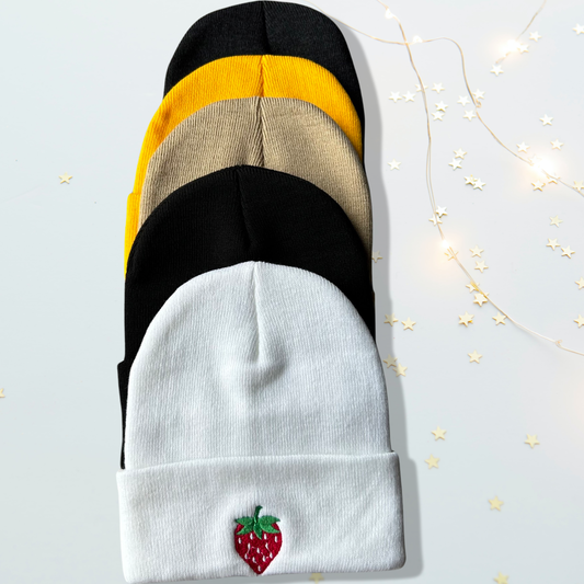 Embroidered Red Strawberry Unisex Cozy Cute Winter Cuffed Knit Beanie Hat Special Gift