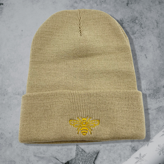 Embroidered Golden Bee Unisex Cozy Cute Winter Cuffed Knit Beanie Hat Special Gift