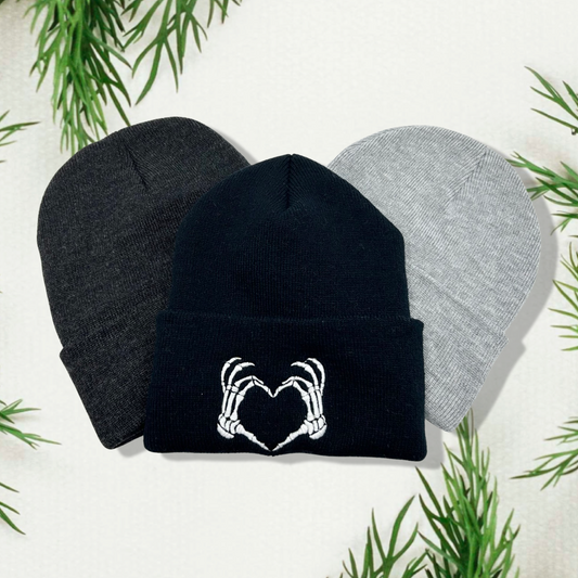 Embroidered Skull Love Unisex Cozy Cute Winter Cuffed Knit Beanie Hat Special Gift