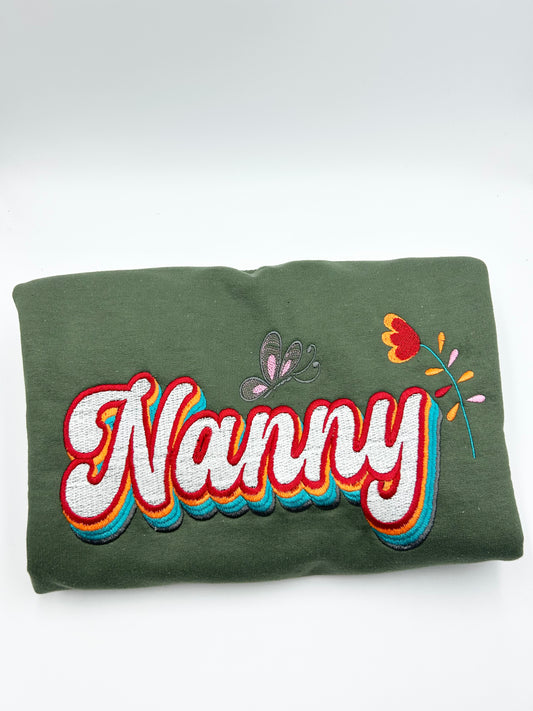 Custom Nanny Embroidery Crew Neck Sweatshirt Floral Butterfly