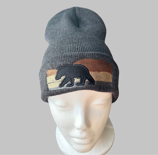 Embroidered Bear Mountain Unisex Cozy Cute Winter Cuffed Knit Beanie Hat