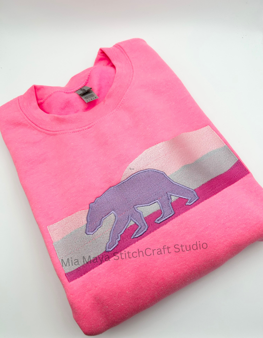 Bear Mountain Embroidery Crew Neck Sweatshirt Alberta Banff in Pink