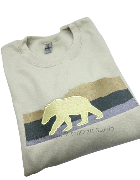 Bear Mountain Embroidery Crew Neck Sweatshirt Alberta Banff in Sand