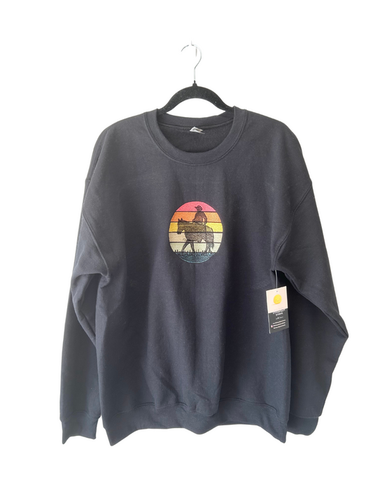 Cowboy Riding Horse Western Embroidery Crew Neck Sweatshirt