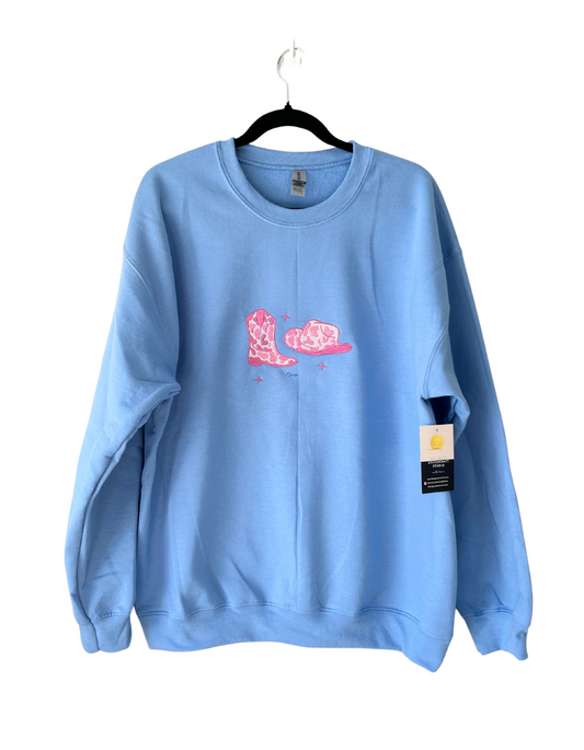 Cowboy Boots & Hat Western Blue Embroidery Crew Neck Sweatshirt