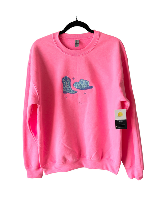 Cowboy Boots & Hat Western Embroidery Crew Neck Sweatshirt