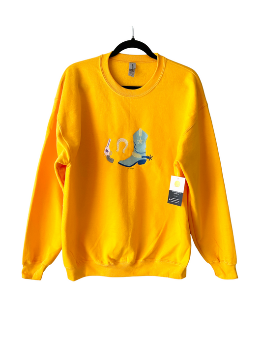 Cowgirl Boots Horseshoe Gun Western Embroidery Crew Neck Sweatshirt