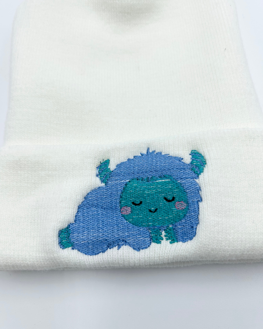 Embroidered Sleeping Yeti Unisex Cozy Cute Winter Cuffed Knit Beanie Hat Special Gift