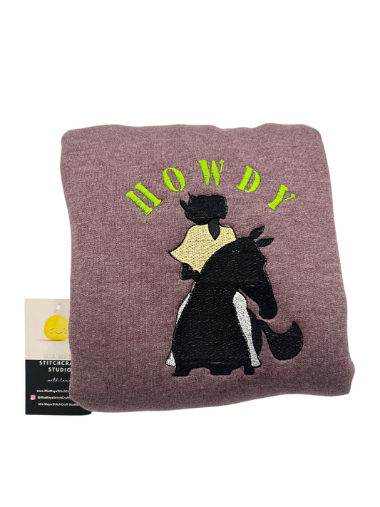 Cowgirl Riding Horse Howdy Western Embroidery Crew Neck Sweatshirt