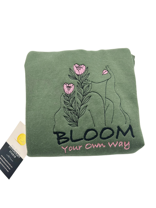 Bloom Your Own Way Floral Girl Outline Embroidery Crew Neck Sweatshirt