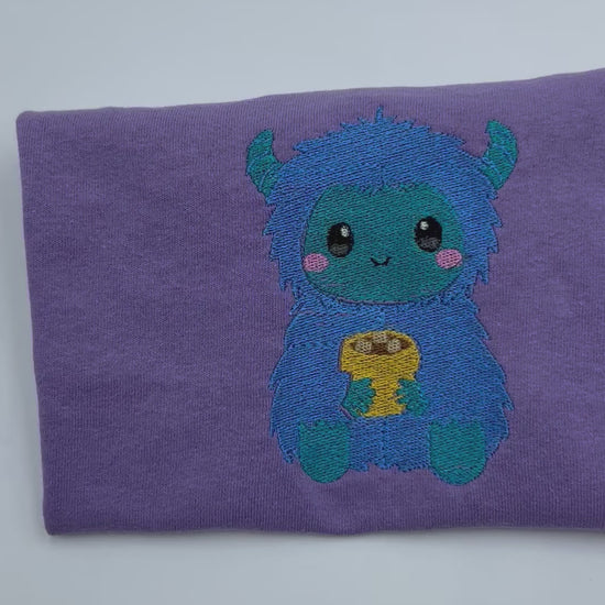 Kids Cute Yeti Holding Hot Chocolate Mountain Embroidery Short Sleeve Cozy Cute Shirts