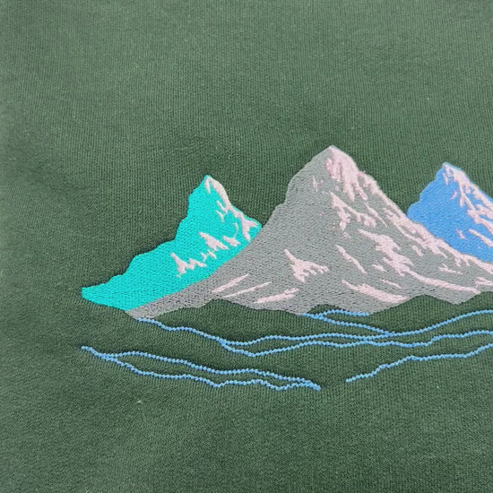 Three Mountains Sunset Minimalist Embroidery Crew Neck Sweatshirt