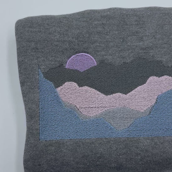 Toddler Sunset Mountain Embroidery Soft Colour Long Sleeve Cozy Cute Fleece Sweatshirt