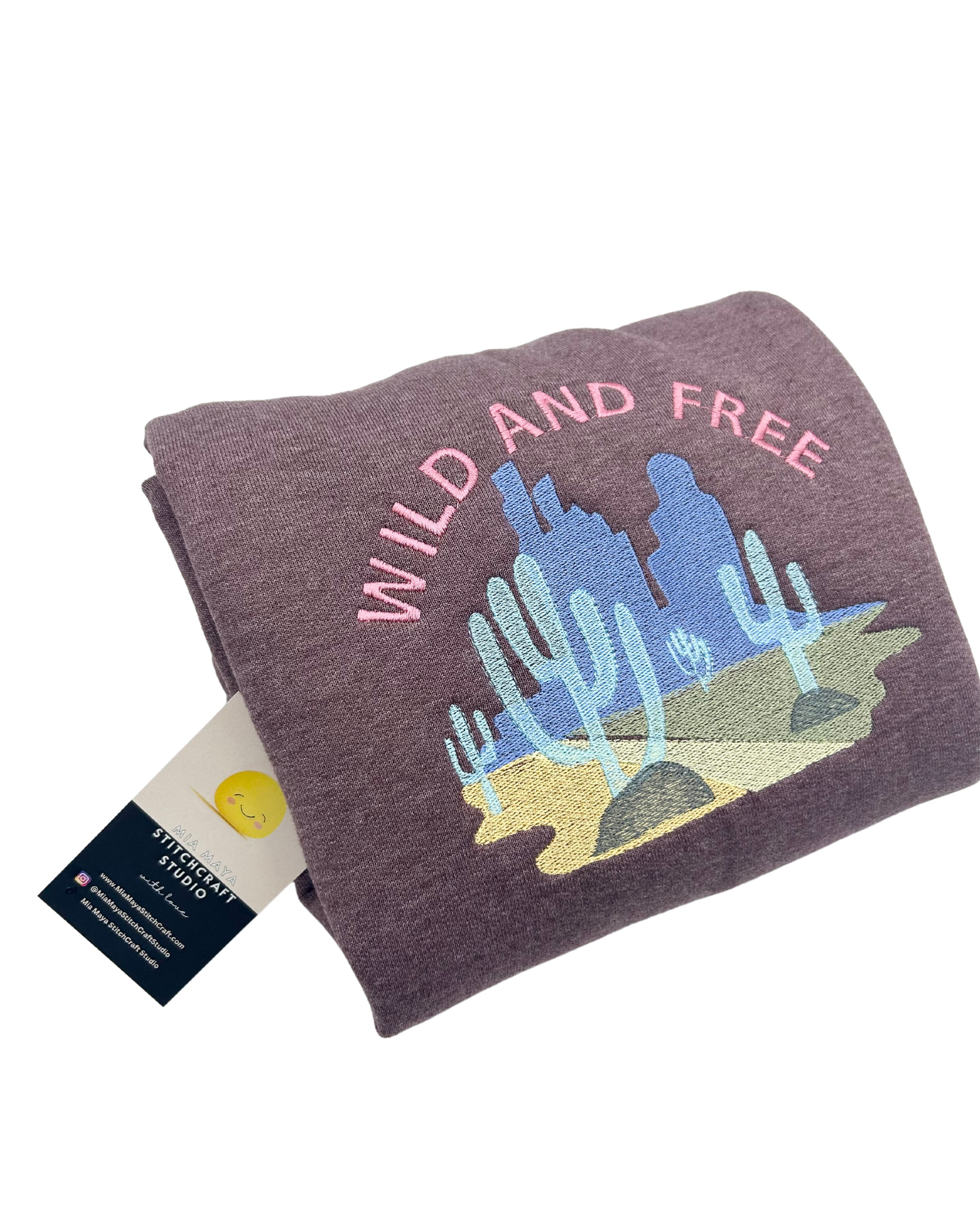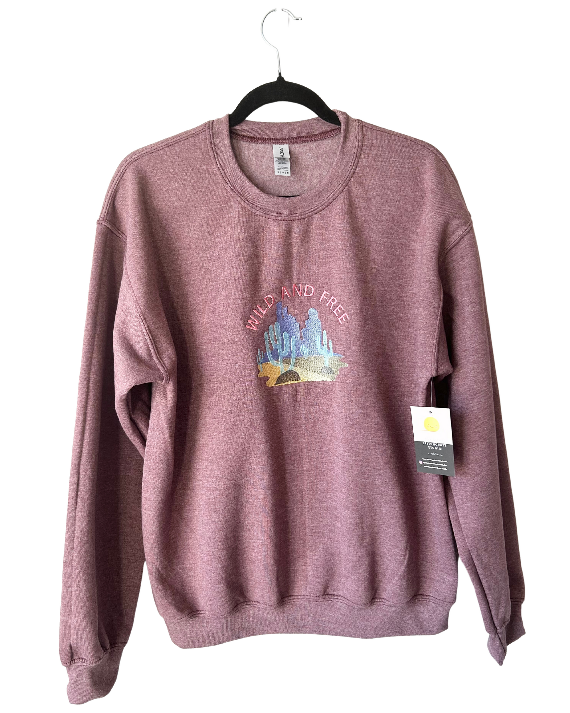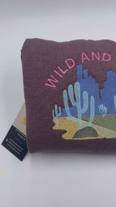 Wild and Free Desert Cowboy Western Embroidery Crew Neck Sweatshirt